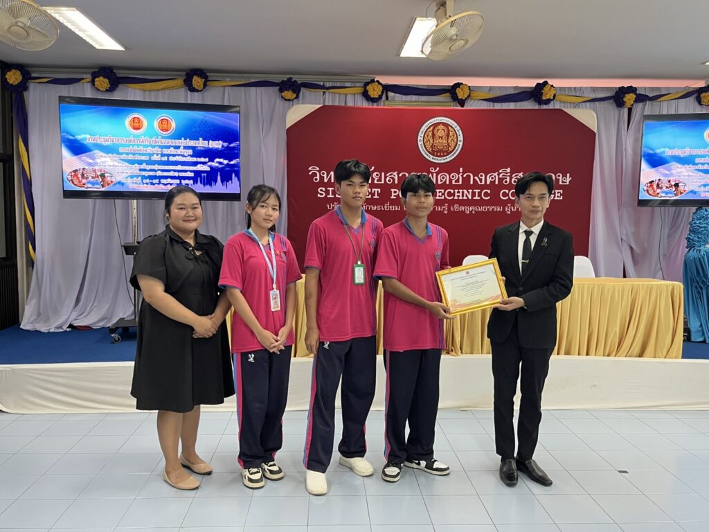 ขอแสดงความยินดี กับนักศึกษาและผู้ควบคุมทีม “ทักษะกีฬาหมากล้อม กับรางวัล รองชนะเลิศ อันดับที่ 1 การแข่งขันทักษะวิชาชีพและทักษะพื้นฐาน ระดับอาชีวศึกษาจังหวัดศรีสะเกษ ครั้งที่ 35 ระหว่างวันที่ 18 – 19 พ.ย. 2568