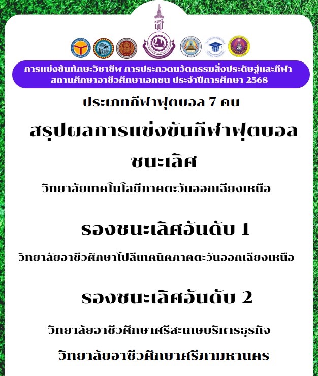 – ฟุตบอลได้รางวัลรองชนะเลิศอันดับที่ 2 ผลการแข่งขัน